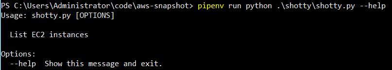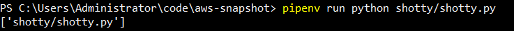 PS C:\Users\Administrator\code\aws-snapshot> pipenv run python .\shotty\shotty.py